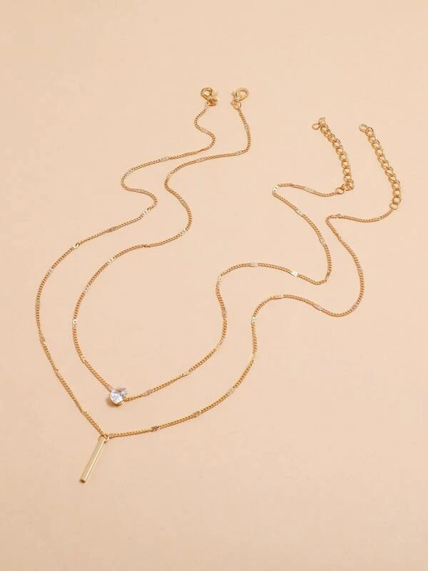 2 peças/conjunto colar strass pingo d’água & retângulo